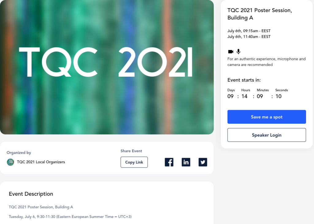 Below are detailed instructions on how to access and use the TQC 2021 Poster session.