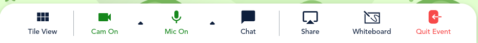 You can turn on your camera and microphone in the main toolbar (Figure 5). Notice that you can only talk to the people that are seated at the same table as you. Click on “Tile view” (or double-click on somebody’s video) to have large-size video feeds (or enlarge the shared screen if somebody has activated the “Share” button), and switch back to the map view by clicking on “Back to Floor” in the main toolbar. You can also use the chat function from the main toolbar to send a message